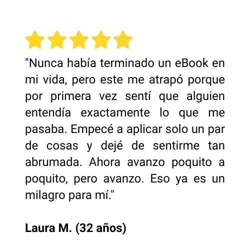 Sé que quizá te preguntes si este eBook realmente te ayudará a dejar de procrastinar. Es normal dudar cuando ya has intentado otras cosas y no han funcionado. Lo entiendo.